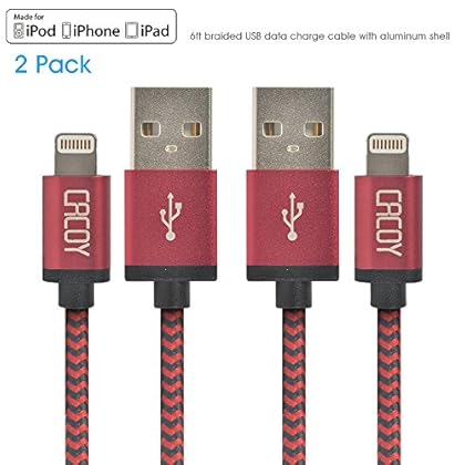 Buy [MFi Certified] CACOY 6.6ft/2m 2xPack Lightning to USB Cable Braided Charging Long Cord with Metal USB Casing for iPhone 6s 6 5s iPhone SE iPad Pro Air 2 mini iPod Nano (Red and Black) at amazon