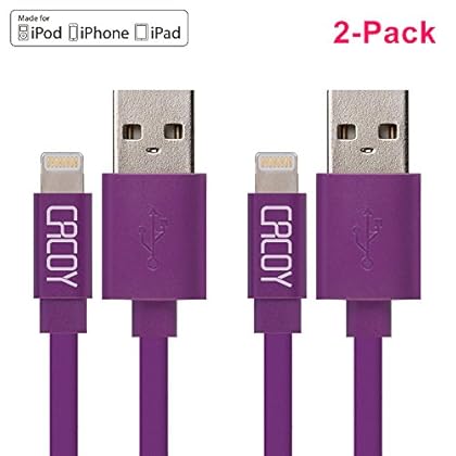 Buy CACOY Apple MFi Certified 2xPack Lightning to USB Flat Cable for iPhone iPad iPod - 3 Feet (1 Meters) - Purple at amazon